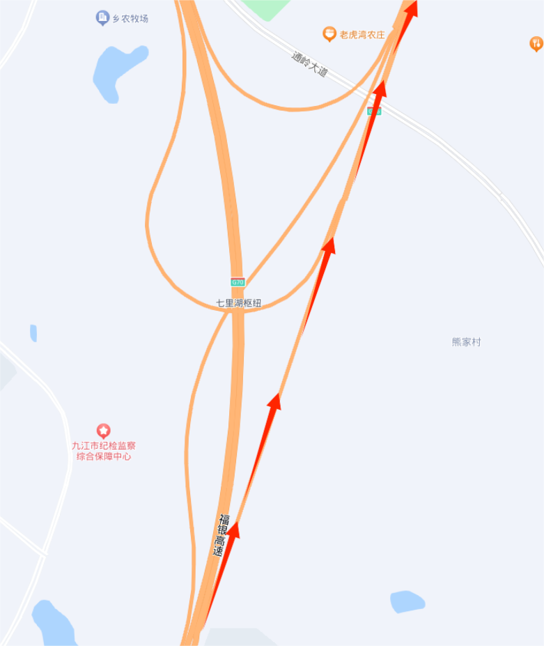 繞行方案2:七里湖樞紐九江城區(qū)方向→九江南收費站→途徑市區(qū)繞行至經(jīng)開區(qū)沙閻路