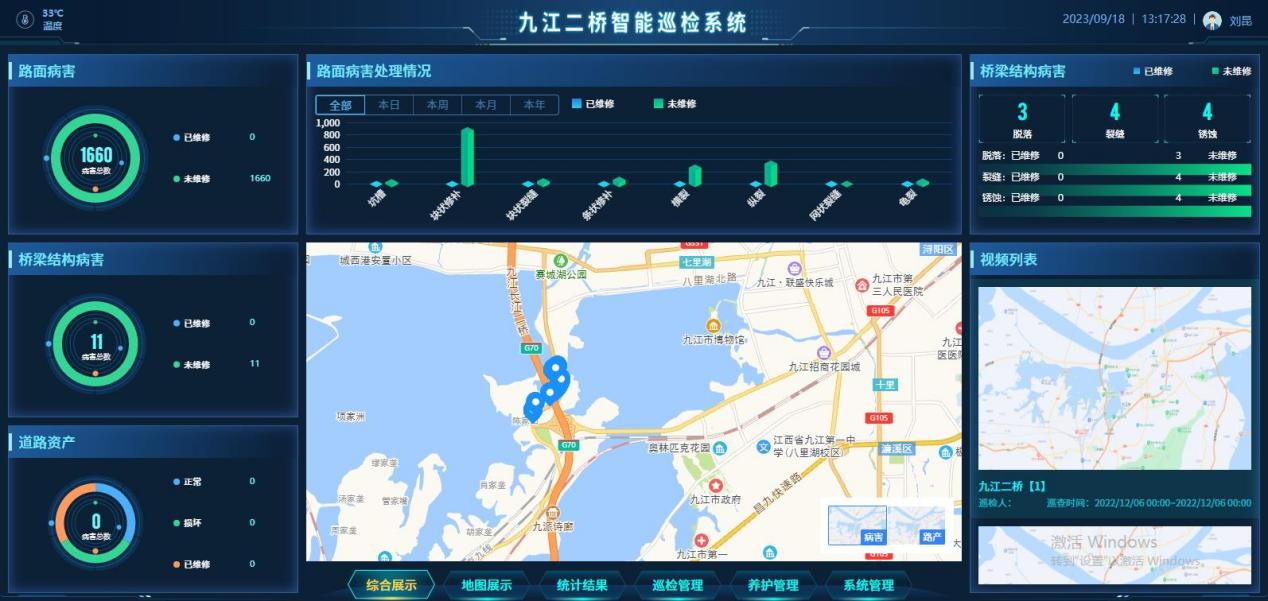 三是開發(fā)了智慧巡檢系統(tǒng),使得智慧巡檢數(shù)據(jù)能夠第一時間傳輸?shù)较到y(tǒng)平臺,同時融入九江二橋橋梁養(yǎng)護管理系統(tǒng),達到數(shù)據(jù)互通和共享的目的。