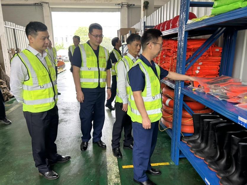 工作專班在公司倉庫檢查應急物資儲備情況