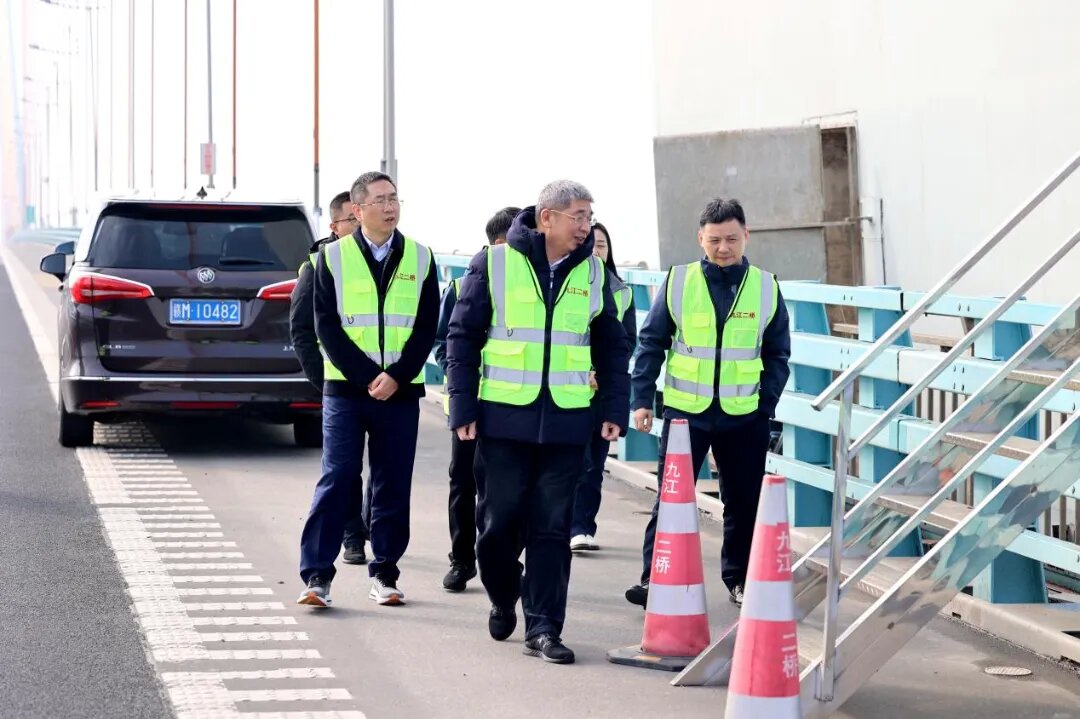 ? ? ? 在九江一橋、九江二橋,揭小健一行先后來(lái)到收費(fèi)現(xiàn)場(chǎng)、主橋橋面等地,實(shí)地察看九江一橋“云收費(fèi)”和工程項(xiàng)目建設(shè)情況,詳細(xì)了解九江二橋橋梁養(yǎng)護(hù)措施及管理成效,對(duì)各項(xiàng)工作給予肯定。揭小健強(qiáng)調(diào),要切實(shí)抓好施工現(xiàn)場(chǎng)的安全管理,在確保項(xiàng)目安全和質(zhì)量的前提下,科學(xué)統(tǒng)籌工作進(jìn)度,充分利用春運(yùn)前的有效施工“黃金期”,積極調(diào)配人力、物力資源,全力保障項(xiàng)目高效有序推進(jìn);要密切關(guān)注極端天氣變化情況,加強(qiáng)分析研判和應(yīng)急準(zhǔn)備工作,確保能夠迅速應(yīng)對(duì)各類突發(fā)情況;要進(jìn)一步細(xì)化應(yīng)急預(yù)案,強(qiáng)化信息技術(shù)手段支撐,全力保障冬季公路橋梁的暢通和安全,為司乘人員提供便捷、安全的出行環(huán)境。