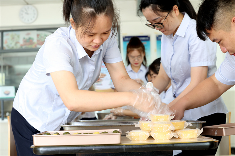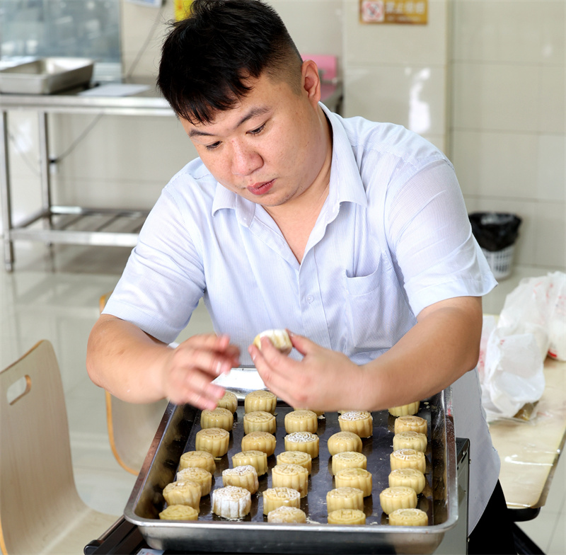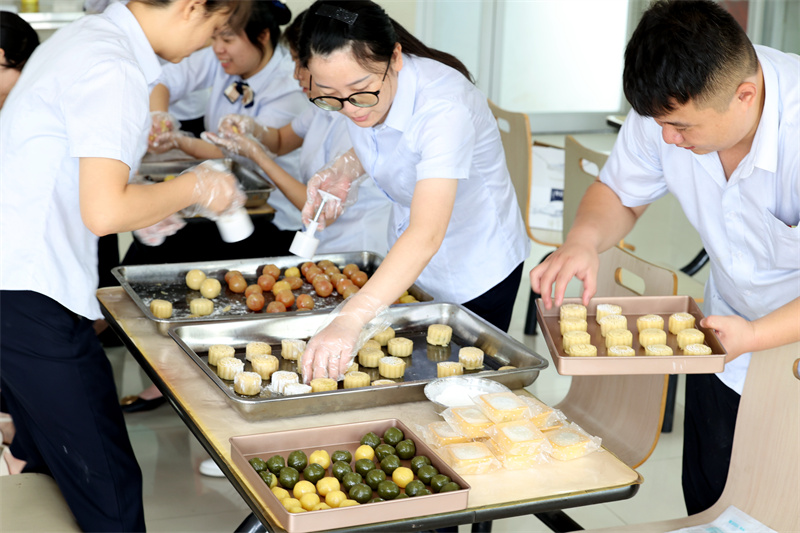 活動(dòng)中,有著西點(diǎn)師專業(yè)經(jīng)歷的食堂管理員負(fù)責(zé)指導(dǎo)大家制作月餅,在講解和示范做月餅的步驟后,大家開始分工協(xié)作,揉面團(tuán)、包餡料、壓模型,宛如一條流水線,分工明確,又配合默契。在現(xiàn)場,許多職工表示是第一次體驗(yàn)制作月餅,看著自己親手制作成型的月餅,既充滿期待,也體驗(yàn)了勞動(dòng)不易,更在歡樂之余感受到了濃濃的節(jié)日氛圍。